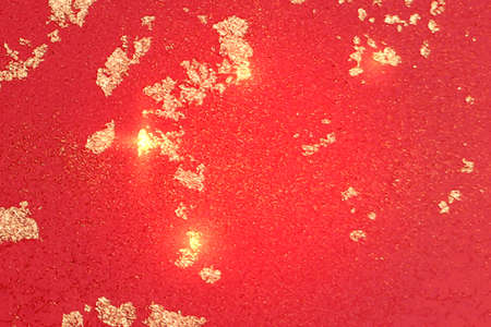 Blurred shining closeup of red gold bright art texture. Macro design of classic glittering backdrop, soft selective focus. Color concept.