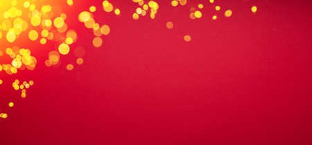 Abstract blurred background, yellow lights on red background. Golden christmas or new year bokeh.