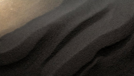 Desert pile sand isolated on black. Dust heap beach texture on shore background. Summer vacation and product advertisement concept