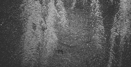 Subtle grain texture. Abstract black and white gritty grunge background. Dark paint spray particles on paper