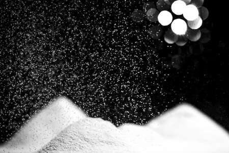 Snow with thawing patches marks the arrival of spring against a black backdrop