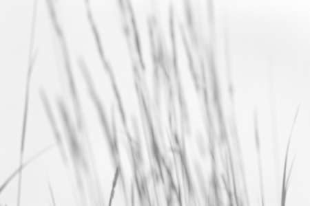 Summer background from the shadow of a sprig of field grass on a white wall. White and black for photo or mockup