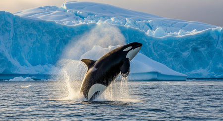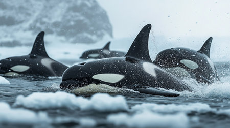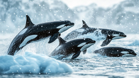 Majestic Orca Whales Leaping in the Arctic Ocean. Generative ai. High quality illustration
