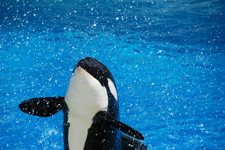 Killer whale or an orca does tricks at the park