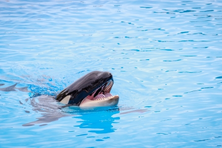 killer whale in the park in the pool