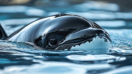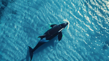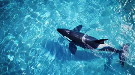 Majestic orca swimming gracefully in the serene blue waters of the ocean