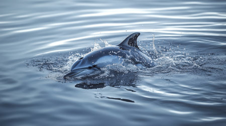 Captivating image of a dolphin swimming gracefully through crystal clear ocean waters, showcasing the beauty and playfulness of marine life in its natural habitat.