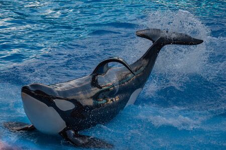 Orlando, Florida. September 30, 2019. Spectacular killer whale in One Ocean Show at Seaworld (10)