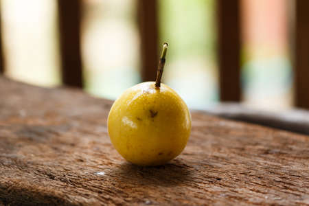 Passion fruits on wooden background in morning