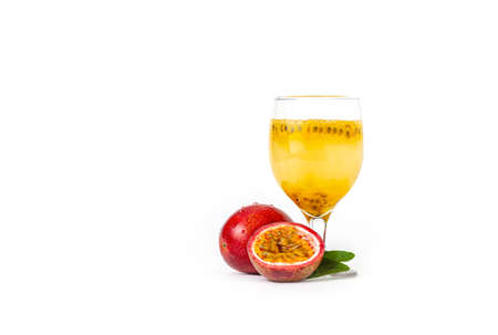 Passion fruit juice in long glass isolated on white background