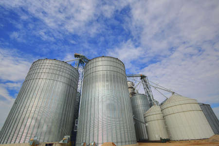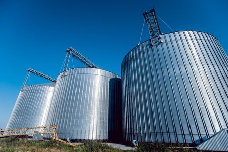 Modern silos for storing grain harvest. Agriculture. Background