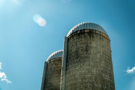 Agricultural silo isolated on blue bright sky on a nice sunny day