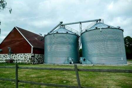 Modern Farm Grain Silos and Storage Barn