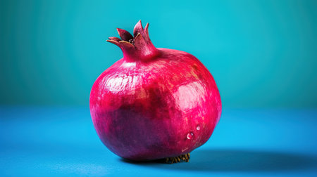Ripe pomegranate on a blue background. Studio shot.