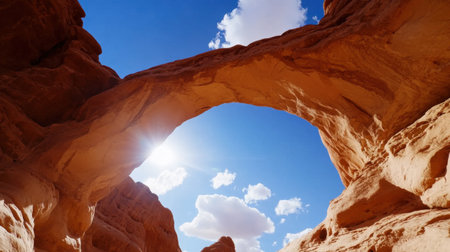 sandstone arch illuminated by soft sunlight, created with generative ai
