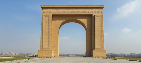 Imposing Triumphal Arch A Monumental Celebration of Victory in Pyongyang, North Korea.