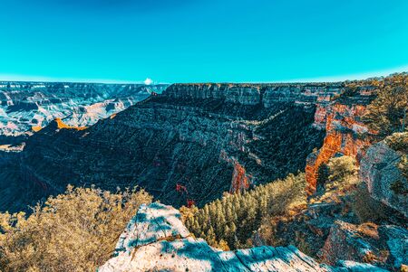 Picturesque landscapes of the Grand Canyon, Arizona, USA. Beautiful natural background. Sunrise view.