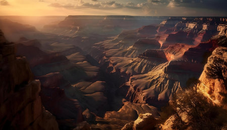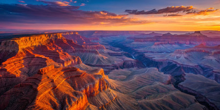 Majestic sunset over the Grand Canyon, Arizona. A breathtaking panorama of nature's wonder.