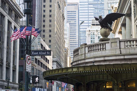 The main entrance of the Grand Central Station with the eagle statues, New York City.