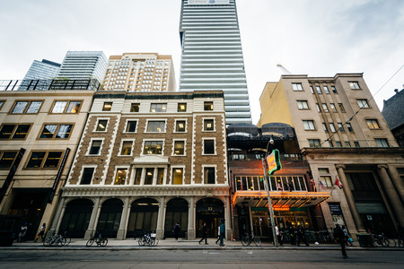 Queens Quay West and modern buildings at the Harbourfront, in Toronto, Ontario.