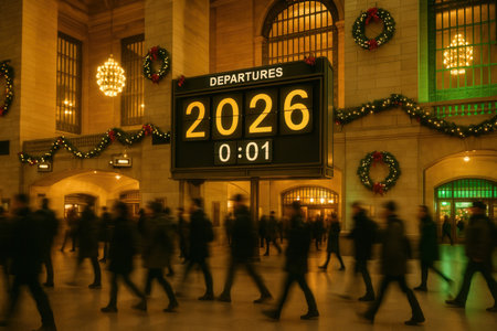 Holiday Crowds In Historic Station Under Departures Board For 2026