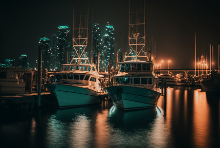 Yachts docked in the port at sunny day. Miami. Florida. USA