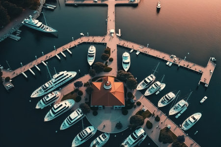 Generative AI : Aerial view of yachts docked near Kemer Turkey