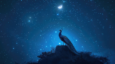 Peacock Silhouette on a Rocky Outcrop Under Starry Sky
