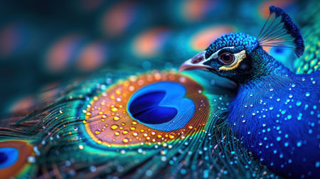 Nature Beauty Unveiled A Close Up of a Peacock Mesmerizing Plumes