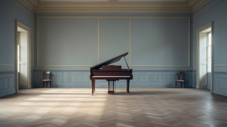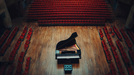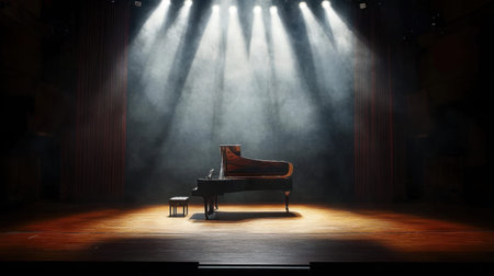 Grand Piano on Stage, Elegance of Music and Theater, Concert Hall, Musical Instrument, Performance