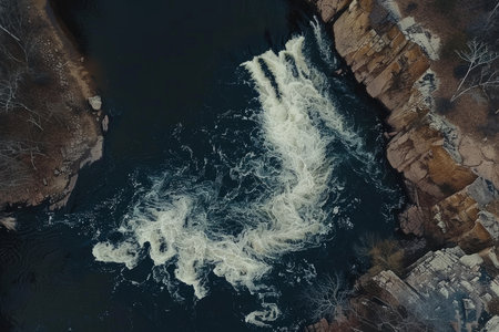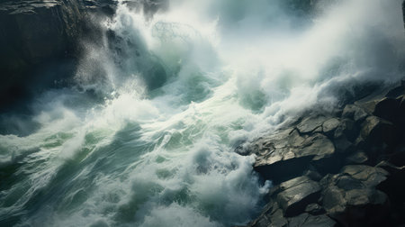 turbulent water texture illustration dynamic powerful, rocky cliff, rushing spray turbulent water texture