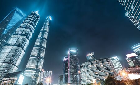 Shanghai city skyline business and travel landmark district urban view at night with coudy cityscape.