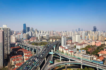 SHANGHAI - MAY 2: skyscrapers and street on May 2, 2013 in Shanghai. Shanghai is the largest city by population in the world with 23 million as in 2010.