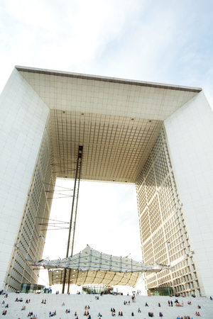 Beautiful modern building La Grande Arche de la Defense in Paris, France, on April 10, 2014