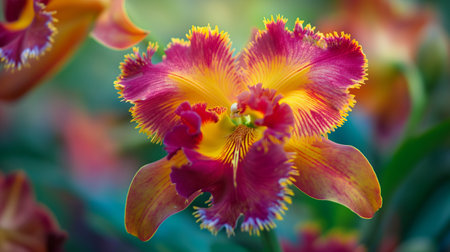 A delicate Miltonia orchid, also known as the Pansy Orchid, with its colorful and flat faced flowers