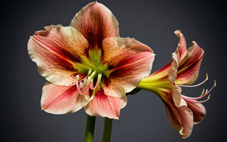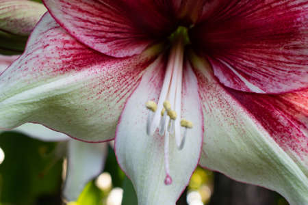 Beautiful Jersey lily (Amaryllis belladonna) or naked-lady-lily white and pink flowers