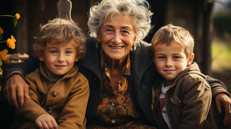 Portrait of an elderly woman with her little grandson.