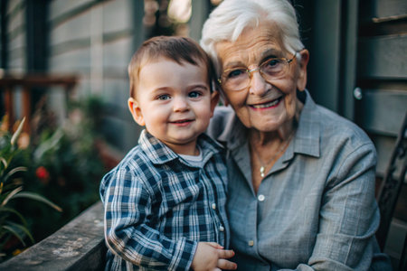A grandmother with a baby, created with the help of generative AI technology.