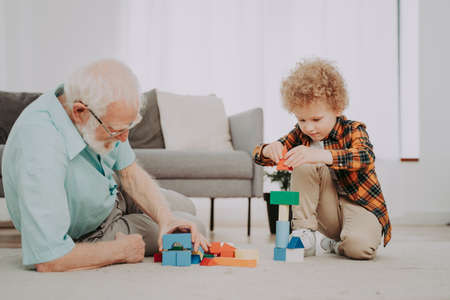 Grandparents and grandson playing at home - Family at home, grandfather taking care of nephew
