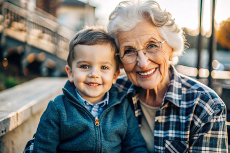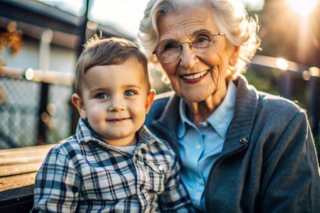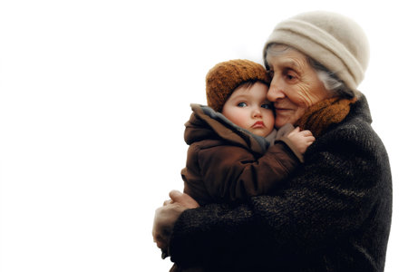Elderly woman holding her grandchild lovingly, showing affection and care in a heartwarming portrait