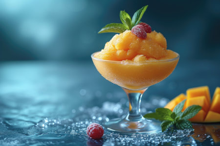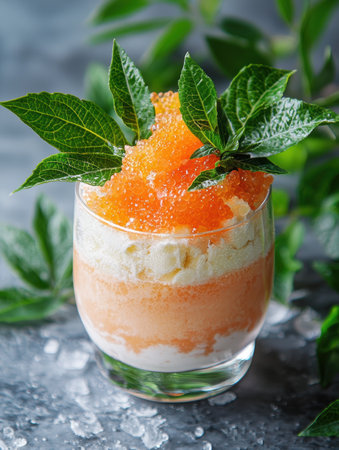 Refreshing orange sorbet dessert with mint leaves