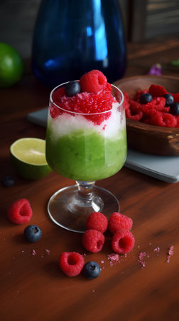 Tangy Red frosty berry cocktail. Juice bar fruit. Generate Ai