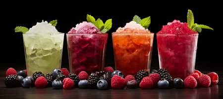 Colorful summer slushies on black background.