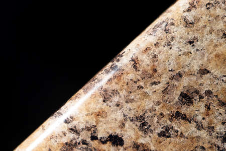 Granites are coarsely crystalline plutonic rocks (plutonites) rich in quartz and feldspar, but also contain dark minerals, mainly mica, photographed in the studio