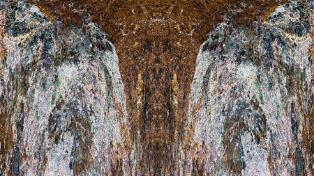 Close up macro view of cracked stone surface brown, gray and blue color. Detailed nature pattern texture or background taken in natural environment. Weathered over years, unique effect textured design