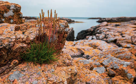 Rocky landscape on the Brittany coastline in North of France.