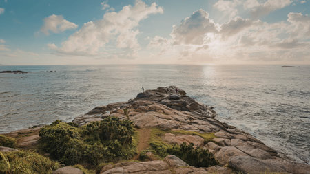 A rocky cliff jutting out into the sea. Minimalistic seascape.
