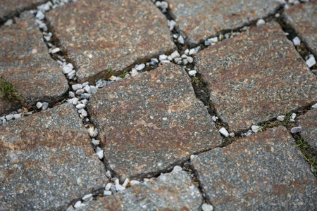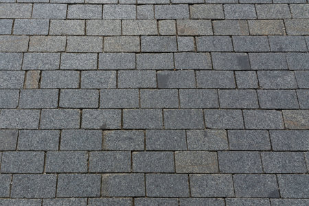 Paving stone texture creating beautiful geometric pattern on walkway in public park