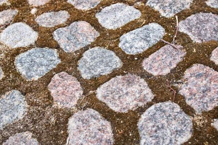 Road paving slabs pattern. Way paved with stones.