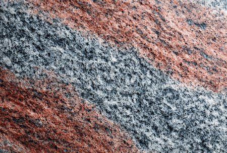 Close-up shot of rough textured stone, showcasing a diagonal pattern of red and grey bands